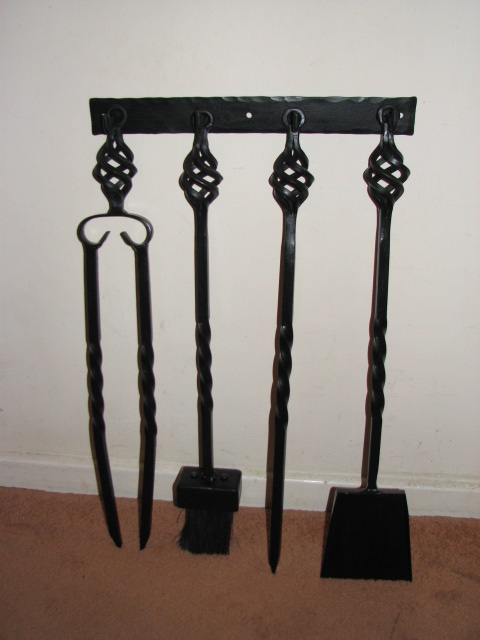Both tool styles are available with a floor stand or wall hooks. The wall hooks can be supplied with one, two, three, four or even five hooks and you can mix and match - some customers do not have much wall space beside the fireplace so they can order a four piece set with two double wall hooks and then mount half of the set on each side of the fire.
